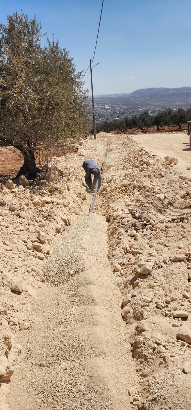 اعمال تركيب شبكة مياه لتقاطع عدد من الاحياء الجديدة في خربة الكروم شمالي البلدة بطول 580 م